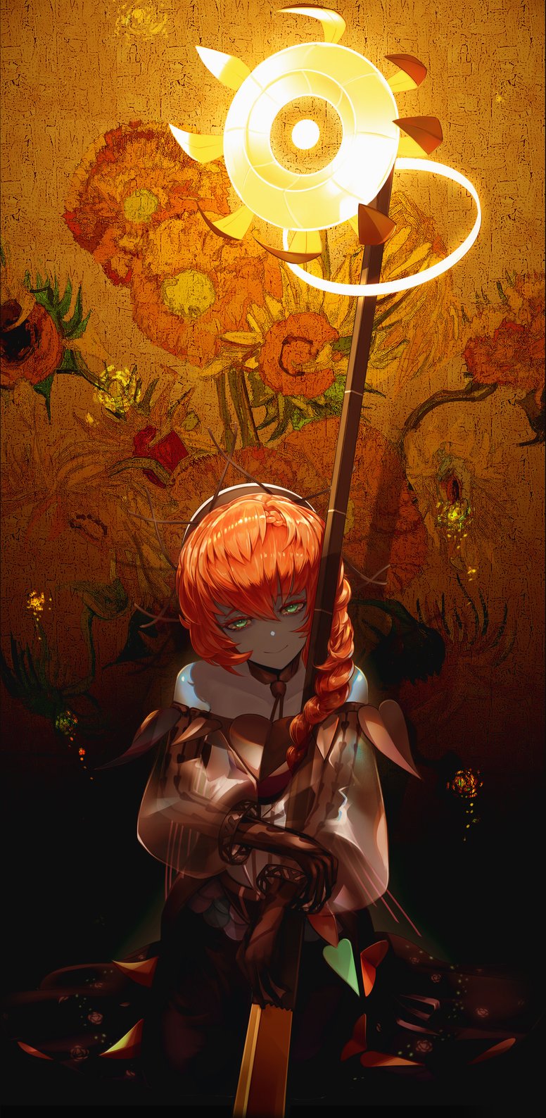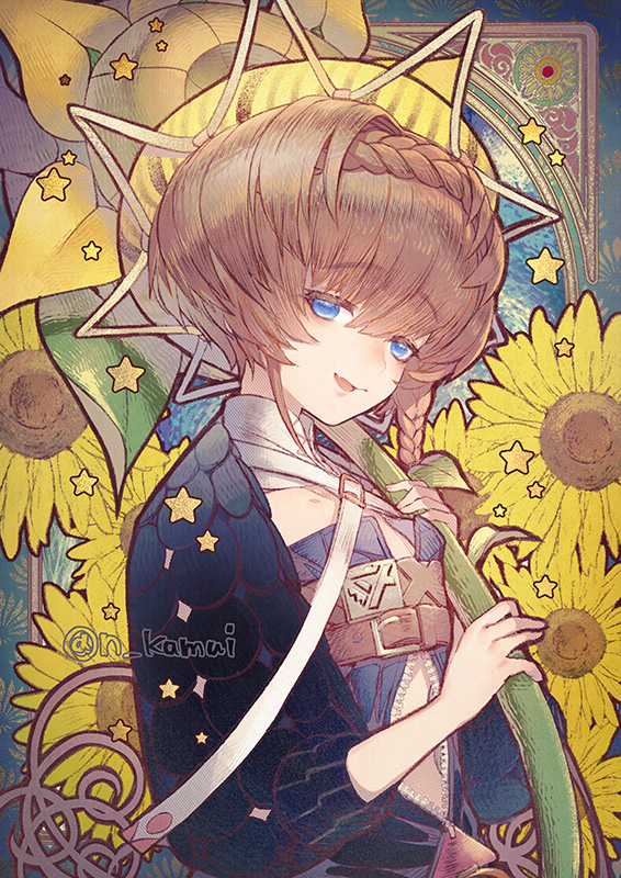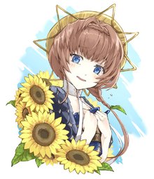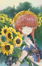 >The woman beckons, causing a sunflower to grow out of the ground in front of her."It's why I love His eyes most of all."
