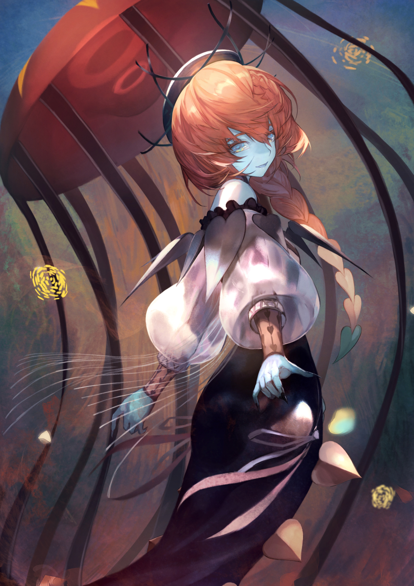 >Trisran goes to shield herself from the seeds and spores, looking up as she notices she's not being hit."It's very very horrible!"