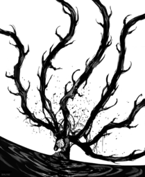 >Black ink begins to leak from her sleeves, dripping to the ground. It begins to snake across the ground rapidly, creating grooves in the earth before suddenly jumping straight towards the beast, ensnaring it once more.