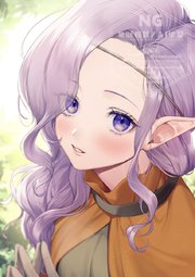 >The girl looks up to see another girl with deep purple hair.