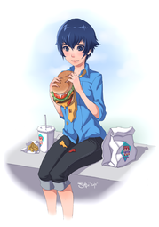 >After passing several stalls, the girl trips on one of the items, losing her grip on the boy and falling over. Noticing his hand is free, the boy looks over his shoulder, only to see someone grab the girl and rush into an alleyway - a slight grin crossing his face as he recognises who it is.