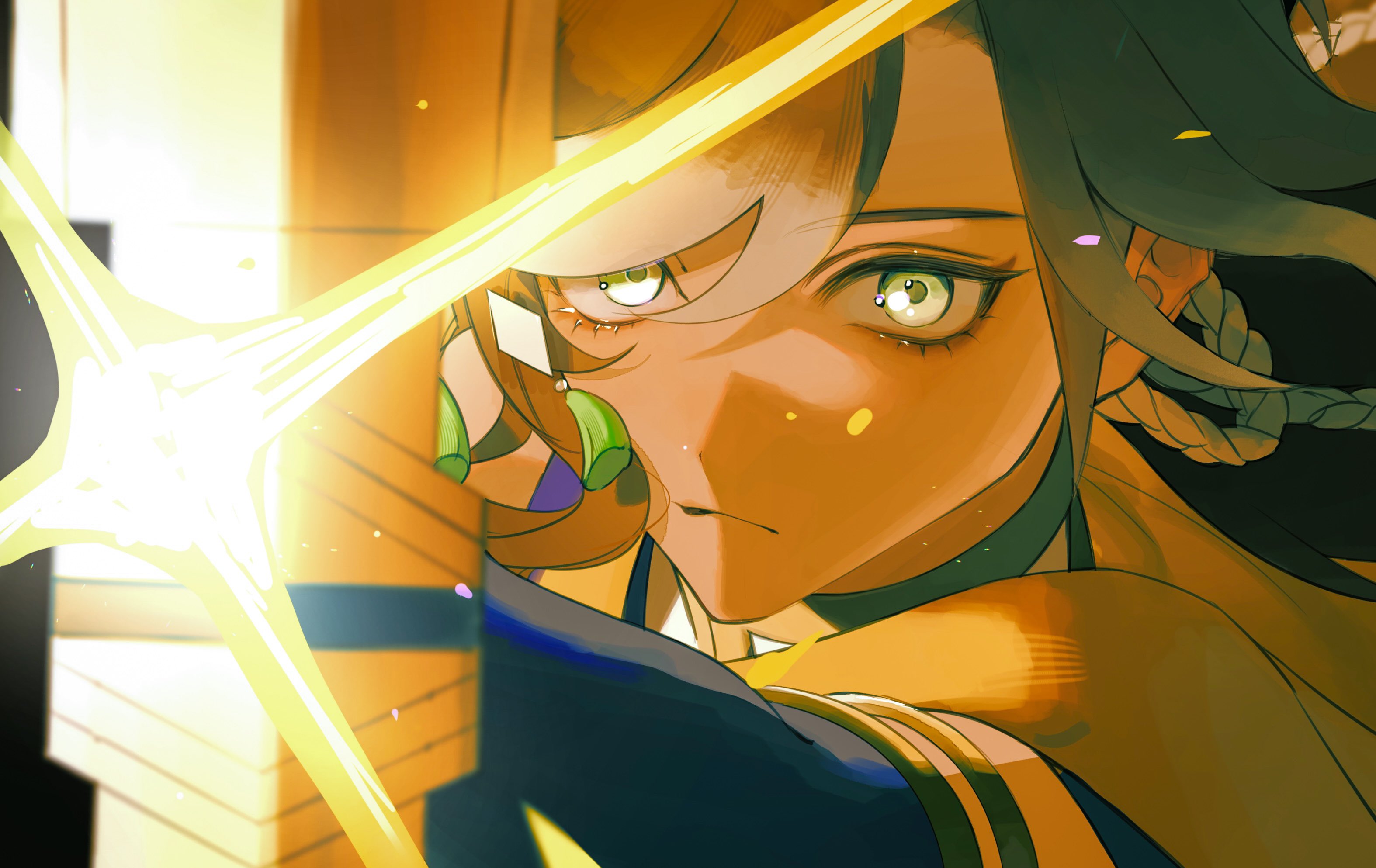 >>4711>Khalid closes his eyes, bracing for impact, only to open them again as the sound of metal hitting metal, the sword that was intended for him having been sent off course after being hit by another sword with a chain attached to it, the owner of which is revealed a few seconds later as a blue-haired woman collides with the blonde woman fist first, having been propelled along the chain - the force of the strike being enough to send the blonde-woman flying back.