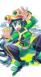 >The woman leaps up into the air in the direction of the militia, grabbing the one leading the pack with her tongue and pulling him up to her fast enough to position him below herself before kicking him back towards the other with enough force to cause an audible crack as hits another - leaving both crumpled on the ground as their comrades aim their weapons up at the woman.