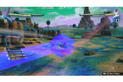 >Victoria then flies off at insane speeds, charging golden magical electricity into her sword, Marmiadoise. The long obsidian blade with a golden edge glows with power and energy as she then strikes a nearby creature - demonstrating strength comparable to her "sparring partner" as she put it - and sending a creature careening off into the distance.